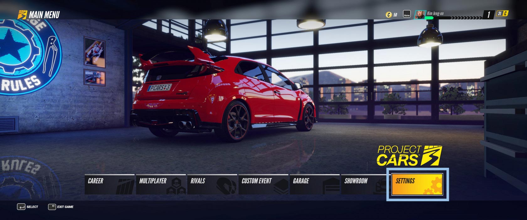 In Project Cars 3 you need to enable a few settings for the game to output telemetry. Once you have finalized the introduction race you will be given access to an expanded settings menu in the Main Menu.